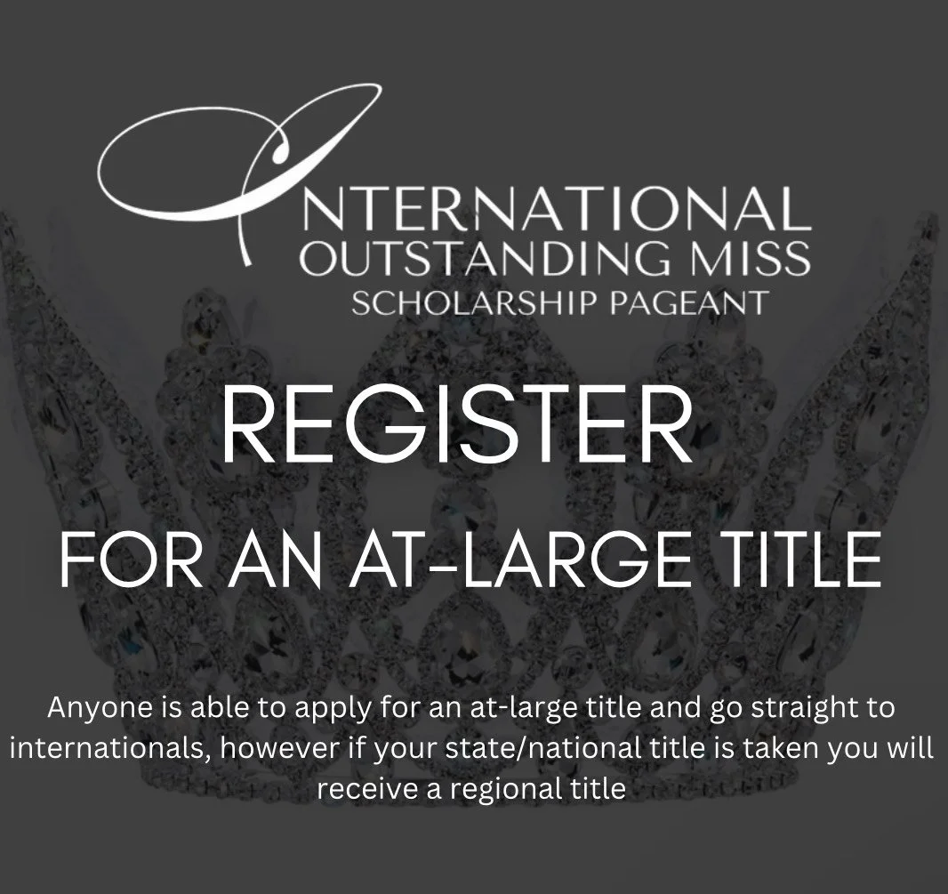 Anyone is able to apply for an at-large title and go straight to Internationals; however, if your state title is appointed you will have to take a regional or nickname title. By filling out this form you agreeing to the official rules and regulations of International Outstanding Miss.